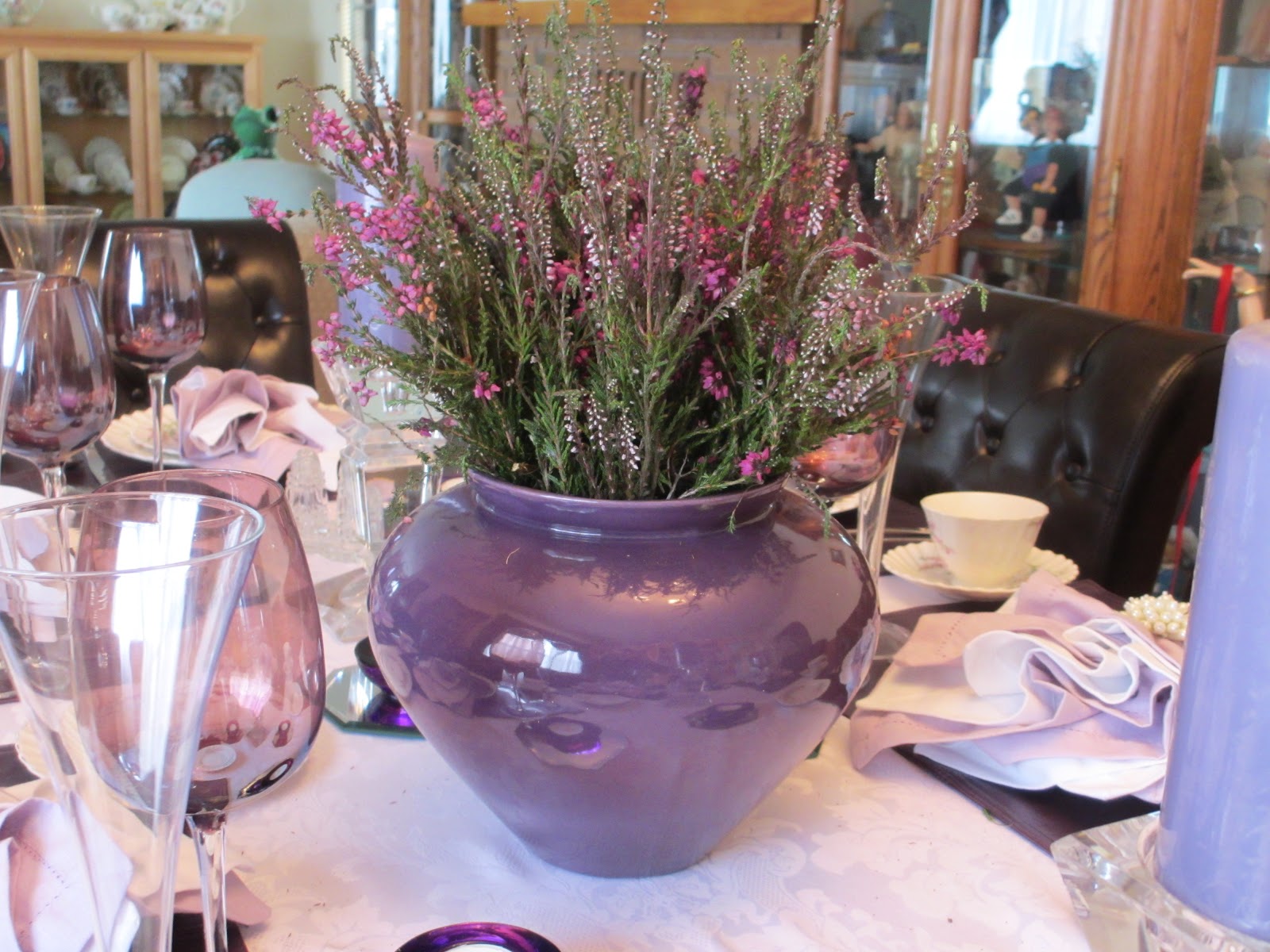 To honor all the people who have been touched by cancer, Pat and I wanted to set the table in purple (quite a challenge since purple is not a color we have a lot of.)